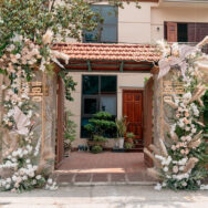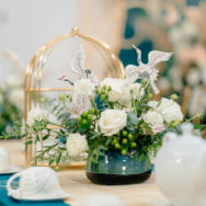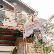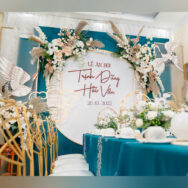 Một nét đẹp mang tính “động” – “bay” từ backdrop, cổng hoa cho đến hoa để bàn, tạo nên sự đồng bộ trên từng chi tiết nhỏ.